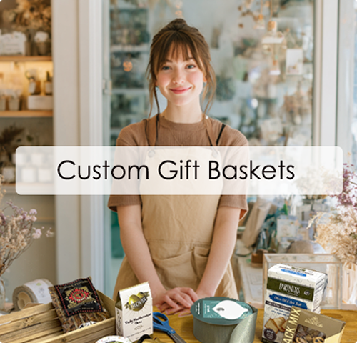 Impress them with a completely unique gift basket YOU curated! You can create your own personalized custom gift baskets right on our web site using our Design It Yourself system. Choose your Theme, your Container, and then select from hundreds of gourmet foods, chocolates, and specialty products to include. Additional personalization options include adding themed coffee mugs, picture frames, Mylar foil balloons, stuffed animals, imprinted ribbon and more! Our Design Specialists will put it altogether in a beautiful arrangement to create your perfect one-of-a-kind gift basket delivered anywhere nationwide!