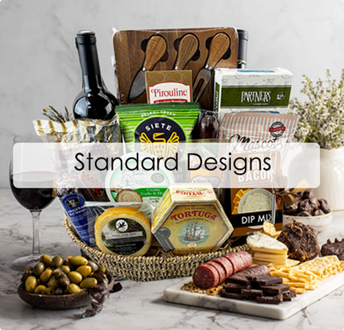 Short on time or not in a creative mood? Select your gift basket from our extensive assortment of Standard Designs. Our Standard Designs are gift baskets we have designed for specific Themes and Occasions and all that's required is for you to choose one. Of course, since every basket is handmade to order, you'll still have the option to embellish your gift with our wide variety of personalization options!